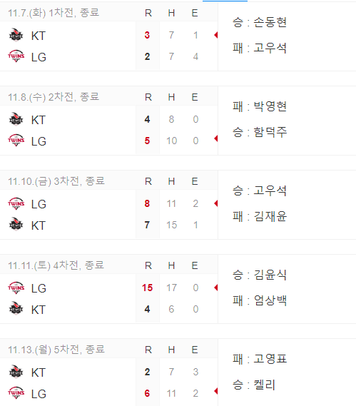 한국시리즈 5차전에서 4대 1로 우승을 차지했지만 7차전까지의 접전을 기대한 KT 팬들은 살짝 아쉬울 수도 있겠습니다.